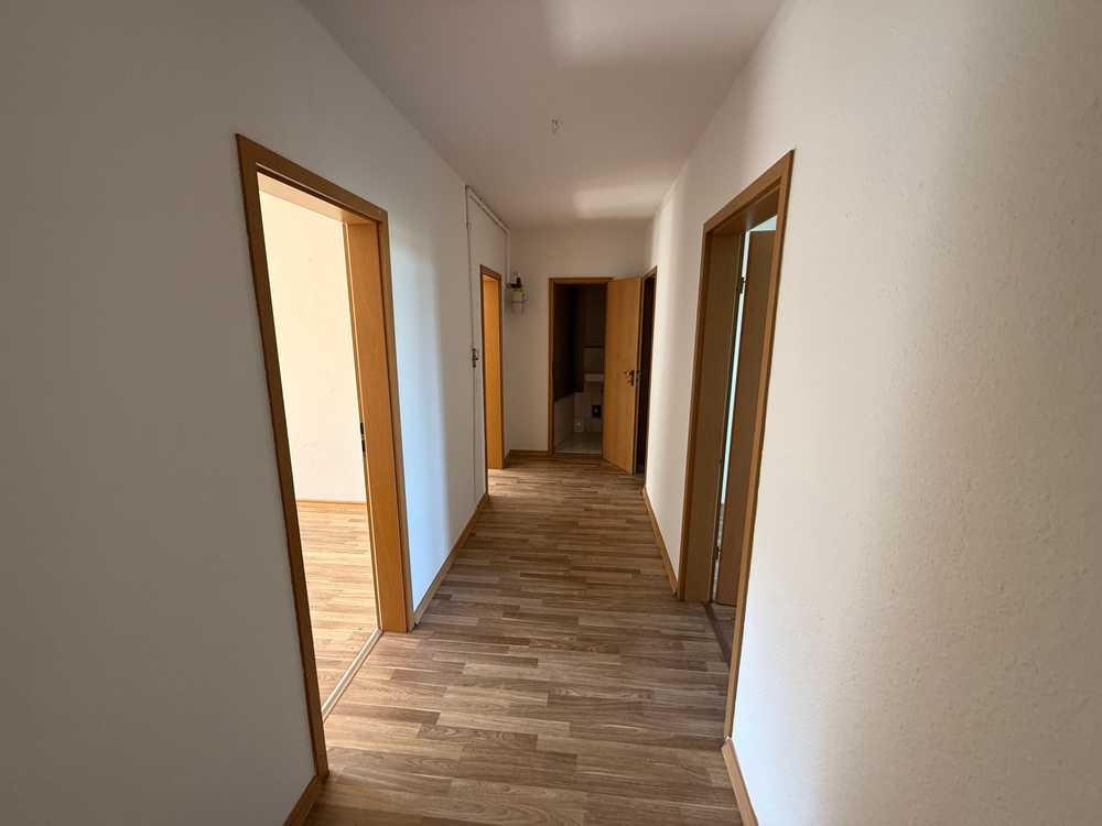 Die Wohnung ist aufgeteilt in ein Wohn- und 2 Schlafzimmer, eine große Essküche, einem Flur sowie einem kleinen Bad mit Wanne.