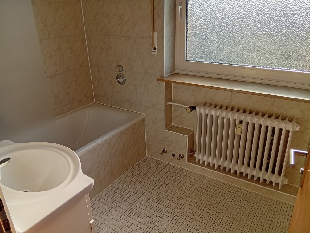 Neu versiegelter Eichenparkett im Wohn-zimmer, Laminatboden, neu renoviertes Bad und WC, schöne Aussicht in alle Richtungen