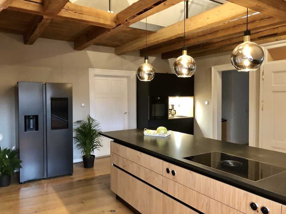 Als Eigentümer haben wir hier lange selbst gewohnt, im Jahre 2020 grundlegend saniert und dabei alt und neu geschmackvoll kombiniert: Freigelegtes Fachwerk, Sichtgebälk, Dielenboden, Wandvertäfelung und Stuck von 1879 treffen auf Glas, Metall und moderne Technik (Details zur mitvermieteten Ausstattung siehe unten).