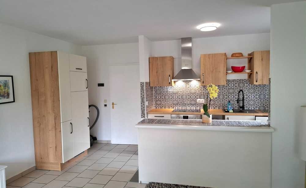 Die neue Küche ist komplett ausgestattet mit hochwertiger Einbauküche, Cerankochfeld, Backofen, Kühlschrank und Spülmaschine – ideal für alle, die gerne kochen.