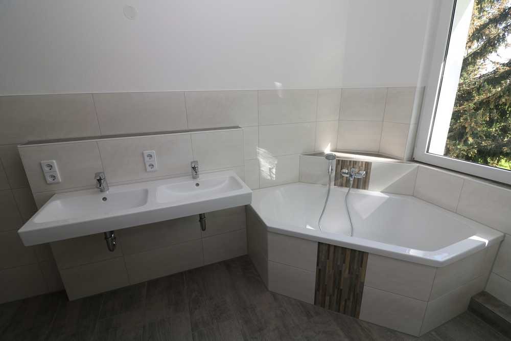 - modern gefliestes Bad mit Eckwanne & Dusche
