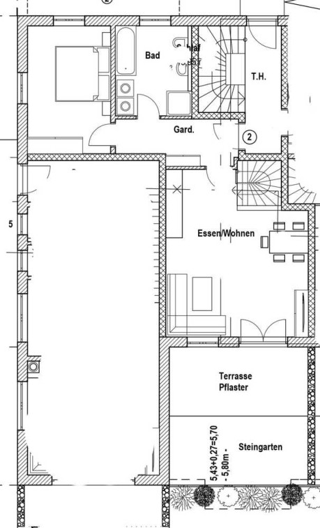 Es steht zudem ein gemeinsamer Waschraum mit je einem Waschmaschinenanschluss pro Wohnung im Keller zur Verfügung.