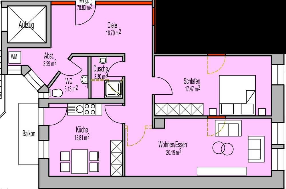 Ein Pluspunkt für die Wohnung ist der gemütliche Balkon und der Fahrstuhl, mit dem der 2. Stock leicht zu erreichen ist.