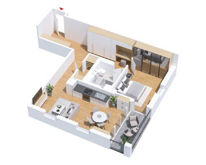 Dafür sorgen die großen Fenster, die eine offene, angenehme Atmosphäre erzeugen. Balkone, Loggien oder Dachterrassen laden dazu ein, die frische Luft zu genießen. Ein besonderes Highlight ist die offene Einbauküche in modernem, hellem Design. Sie bietet viel Stauraum und ist mit modernsten Elektrogeräten namhafter Hersteller ausgestattet.