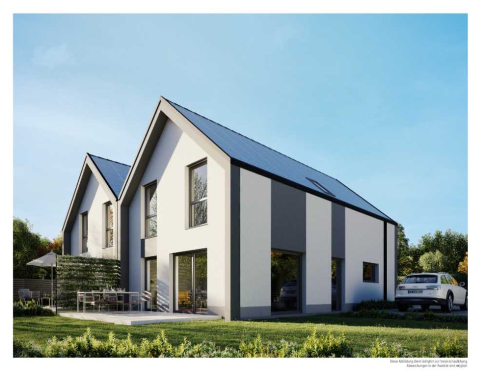 Durch die nachhaltige Bauweise und der fast klimaneutralen Wärmeerzeugung wird ein umweltfreundlicher Marktwert erreicht. Durch die Luftwärmepumpe und Photovoltaikanlage wird die Verbrennung von fossilen Brennstoffen nahezu vermieden und so ein klimafreundliches Wohnen mit konstanten Wärmenebenkosten ermöglicht. Die Doppelhaushälften verfügen über 5 Zimmer, aufgeteilt in ein großzügiges Wohn-/Esszimmer sowie vier weitere geräumige Zimmer mit individueller Nutzungsmöglichkeit.