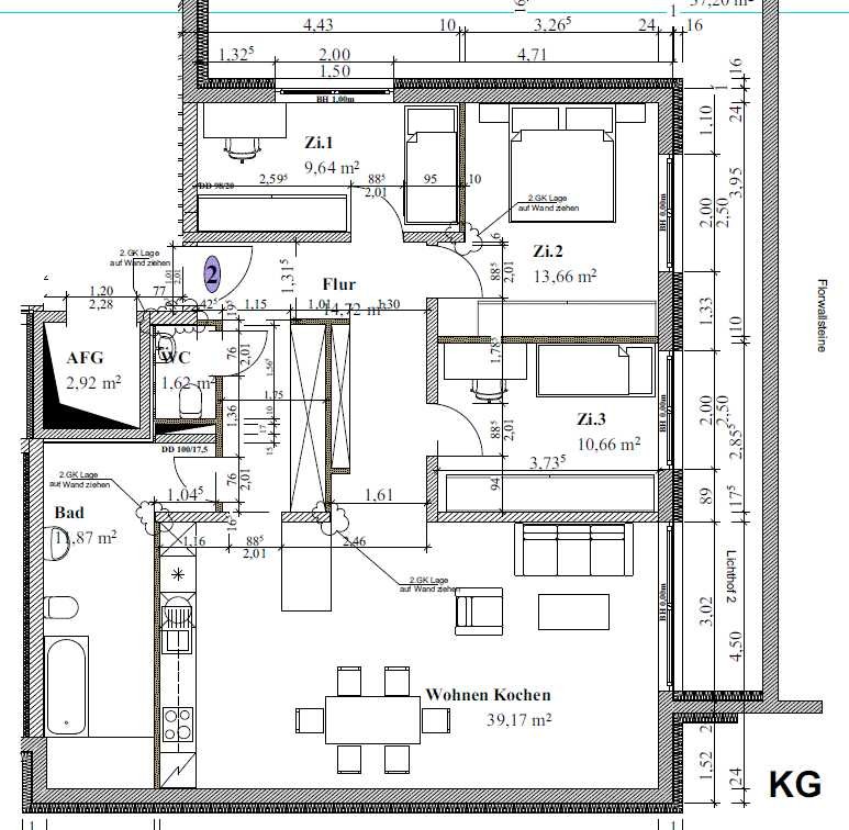 Zur Wohnung gehören vier gut geschnittene Zimmer, ein großer Bad sowie ein separates Gäste-WC – ideal für Familien, Paare, Wohngemeinschaften oder zum Arbeiten von Zuhause.