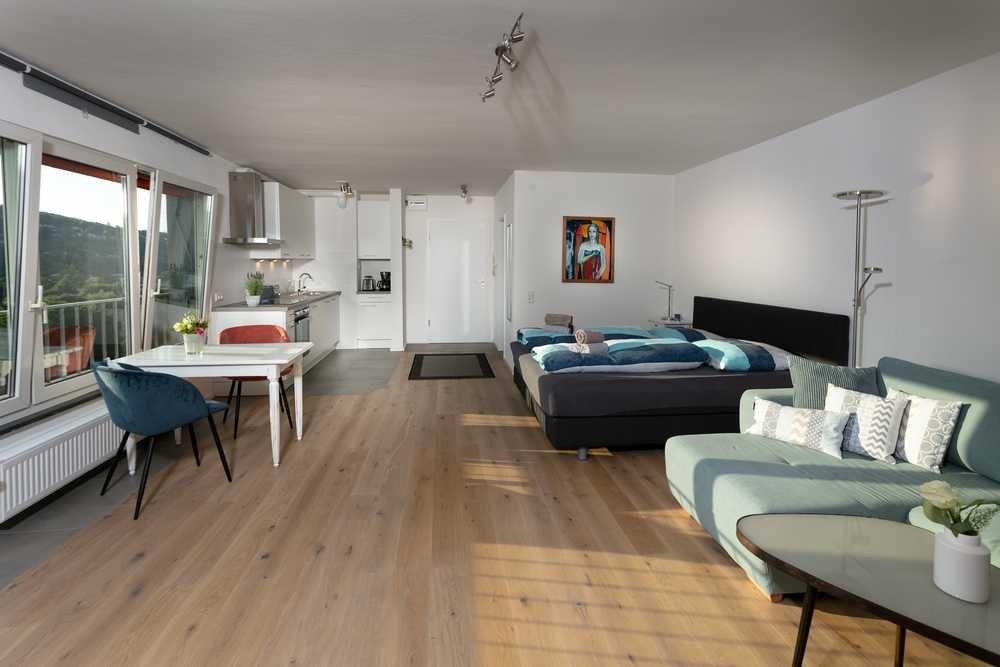 Moderne, vollständig ausgestattete und möbilierte 1- Zimmerwohnung mit Aussicht, grenznah, befristet