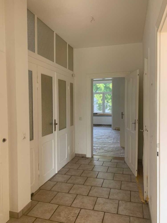 Diese großzügige Altbauwohnung im 1. OG mit rund 145m² WF vereint helles Wohnen mit einer naturnahen Atmosphäre. Hohe Decken, große Fenster, Parkett-, Dielenböden und italienischen Designerfliesen schaffen ein stilvolles Ambiente. Die Wohnung wird frisch renoviert übergeben. Sie verfügt über 5 Zimmer, Badezimmer mit Wanne und Dusche sowie Fenster zum Garten, Gäste-WC, gr. Wohn- Einbauküche, Abstellraum, Flur, Erker, z.T. Stuck, Balkon zum Garten.