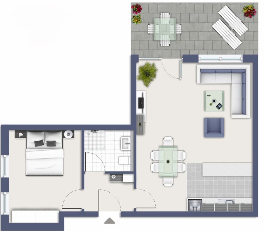 Stilvolle, neuwertige 2-Zimmer-Terrassenwohnung mit EBK und kleinem Garten