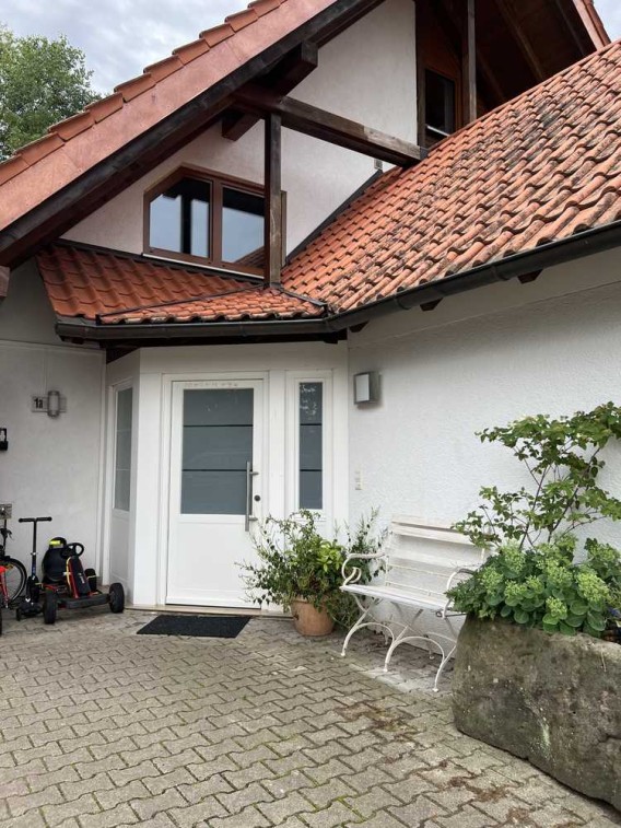 Diese traumhafte naturnahe Maisonette-Wohnung zeichnet sich durch eine gehobene Innenausstattung aus und kann ab dem 1.11.2025 bezogen werden. Dieses „eins von tausend“ Objekt überzeugt Naturliebhaber und Gartenfreunde. Wie ein kleines Haus auf einem Pferdehof inmitten der Natur.