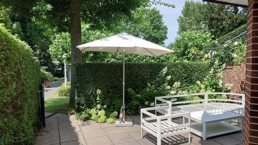 Das Highlight ist allerdings die absolut ruhige Gartenterrasse mit Grünblick in den gepflegten Garten.