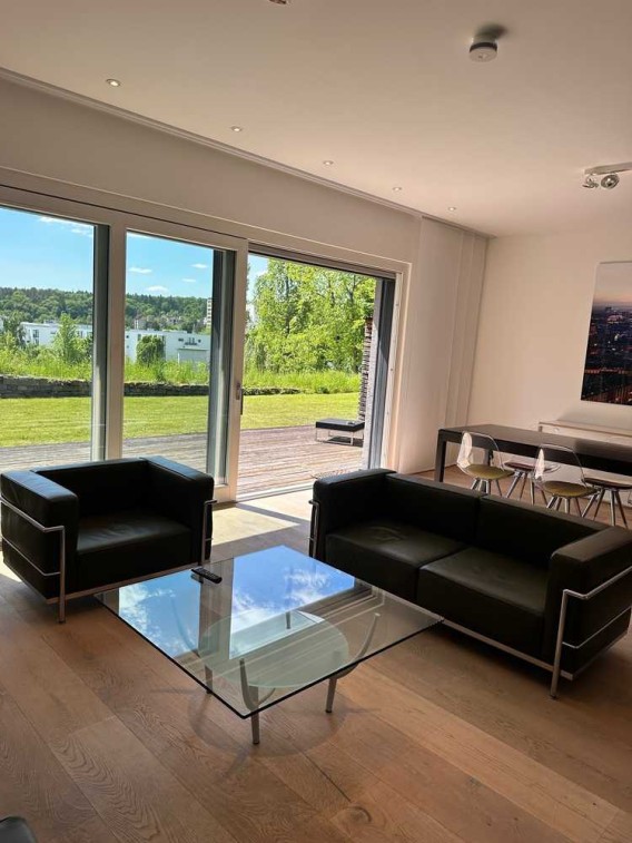 Auf Wunsch kann die Möblierung (Esstisch mit Stühlen, Sofas und Sessel sowie Sideboard und TV) kostenfrei übernommen/genutzt werden.
