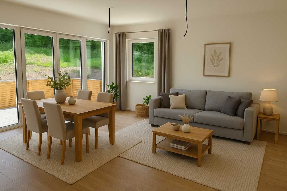 Die in dieser Anzeige gezeigten Visualisierungen dienen ausschließlich als Beispiel und zeigen eine mögliche Möblierung. Die dargestellte Einrichtung ist nicht Bestandteil des Angebots.