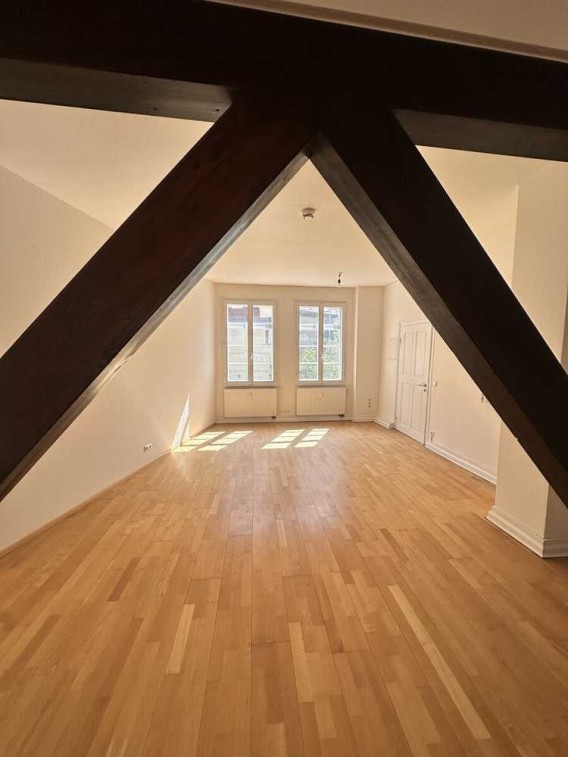Die 3-Zimmer Wohnung bestehend aus einem großen hellen Wohn-Esszimmer, zwei geräumigen Schlafzimmern, einer Küche und einem Bad mit separatem WC, vereint modernen Wohnkomfort mit fachwerktypischen Elementen. Die frei liegenden Balken im Wohnbereich schaffen in Verbindung mit dem Parkettboden eine gemütliche Atmosphäre und verleihen der Wohnung einen einzigartigen Charakter.