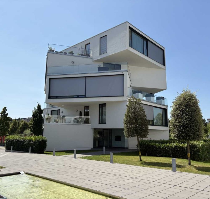 Die Wohnung beeindruckt durch ihre großzügige Raumaufteilung, bodentiefe Fensterflächen und ein lichtdurchflutetes Ambiente. Herzstück ist das weitläufige Wohn- und Esszimmer mit direktem Zugang zur Terrasse und zum gemeinschaftlich nutzbaren Garten. Der Blick ins Grüne und die unmittelbare Nähe zum Park schaffen eine besondere Wohnatmosphäre.
