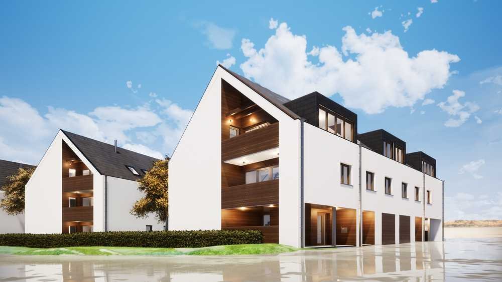 Im neu gebauten Objekt "Quartier am Löwen" entsteht neben drei Mehrfamilienhäusern auch ein Gebäudeensemble mit vier hellen und gut geschnittenen Reihenhäusern. Die Häuser eignen sich für jung und alt. Jede Einheit verfügt über mindestens einen Balkon, einen nutzbaren Garten sowie Garage im Haus. Es handelt sich um ein Energieeffizienzhaus der Klasse EH55 Erneuerbare Energien mit umweltfreundlicher Energieerzeugung unter Einsatz einer Wärmepumpe. Die Häuser fallen unter die neue Kategorie nach dem GEG-Gesetz "Klimafreundlicher Neubau".