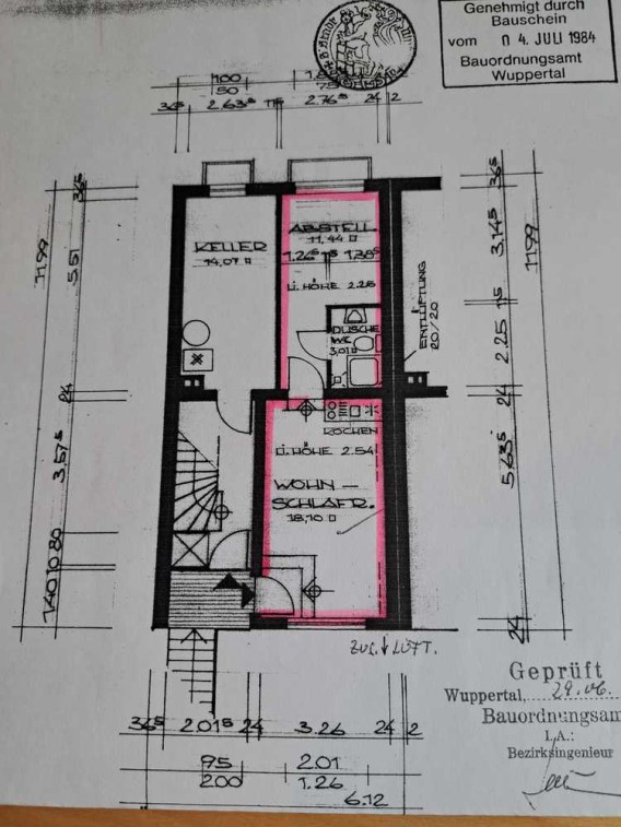 Diese vollständig renovierte, komfortable und möblierte 1,5 Zimmer-Wohnung mit separaten Eingang befindet sich im Souterrain eines Einfamilienhauses aus dem Jahr 1982 und ist aufgrund der Raumaufteilung, der Größe, der Nähe zur Universität und des Zentrums Wuppertal ideal geeignet für Studenten oder Singles. Die 33 m2 Wohnfläche teilt sich in einen Wohnraum mit Pantryküche, einem Schlafzimmer und einem Badezimmer auf. Die Wohnung ist mit einem hellen Fussboden in Echtholz ausgestattet. Im modernen Badezimmer ist eine barrierefreie große Dusche, ein Waschbecken, ein WC sowie eine Waschmaschine vorhanden.