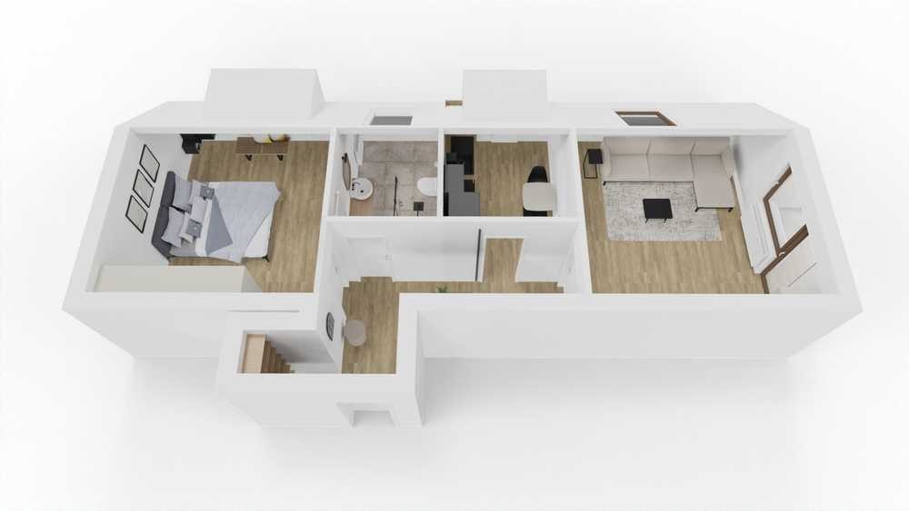 Die Wohnung befindet sich im Dachgeschoss eines gepflegten Mehrfamilienhauses und bietet rund 68 m² Wohnfläche. Sie überzeugt durch ihre hochwertige Ausstattung: ein helles Wohnzimmer mit Zugang zum sonnigen Balkon, ein großzügiges Schlafzimmer, ein Tageslichtbad mit Dusche, WC, Waschbecken und Waschmaschinenanschluss sowie eine moderne Einbauküche mit wertigen Elektrogeräten. In allen Wohnräumen wurde ein hochwertiger Vinylboden mit hohem Dämmgrad verlegt, die Wände sind mit Feinputz versehen. Zur Wohnung gehören außerdem ein Kellerabteil im Untergeschoss sowie eine Einzelgarage, die für 50 € im Monat zusätzlich angemietet wird (bereits in den Nebenkosten von 240 € enthalten).