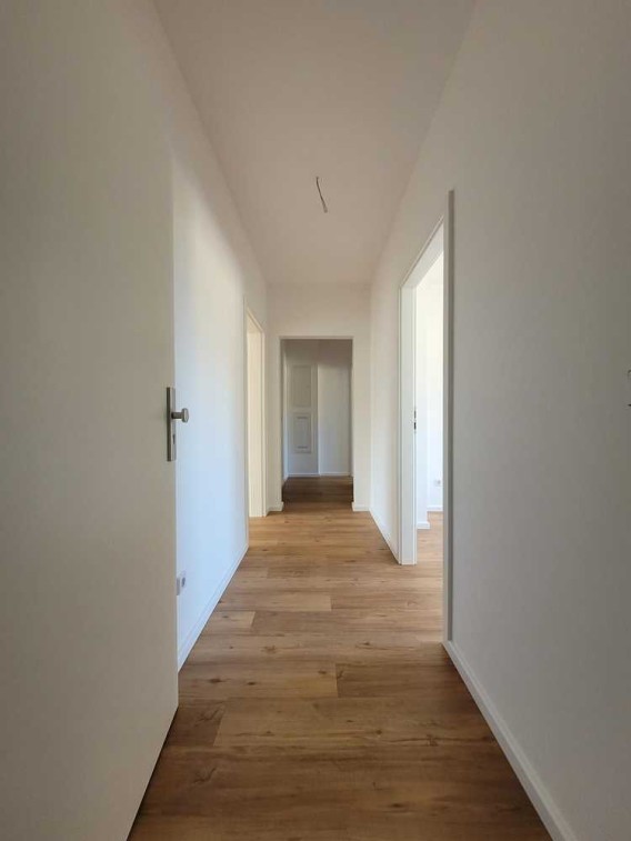 Bei der Modernisierung wurde in den Räumen ein hochwertiger Vinylbodenbelag in Holzoptik verlegt. Ganz neu sind auch die Zargen und Türblätter in allen Räumen, die in weiß erstrahlen. In der Küche ist ein Fliesenspiegel mit sehr modernen Fliesen angebracht und bietet ausreichend Platz für eine Einbauküche. Das innenliegende Bad ist komplett neu gefliest und mit einer Duschwanne sowie einem Waschmaschinenanschluss ausgestattet. Die Wände im Bad wurden frisch gespachtelt, mit Malervließ versehen und anschließend weiß gestrichen. Ein neues Waschbecken sowie WC runden das Wohlfühlbad ab. Diese Wohneinheit ist mit Rauhfaser tapeziert und strahlend weiß gestrichen. Ein PKW-Stellplatz kann mit einer gesonderten Vereinbarung gegen Gebühr dazugemietet werden.