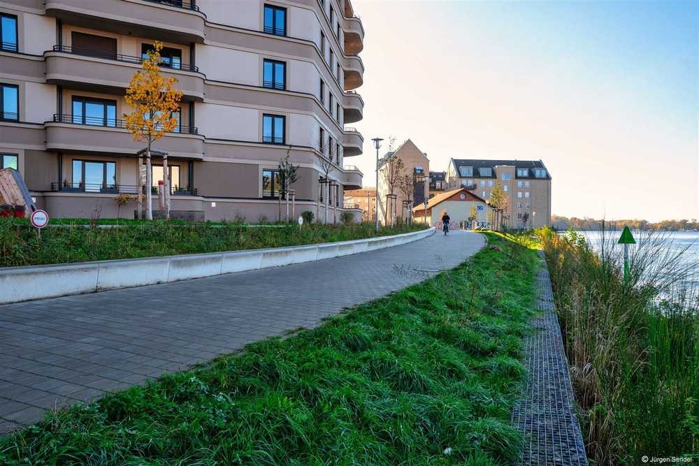Das Haus wurde Anfang 2024 erstmals bezogen und überzeugt durch helle, zeitgemäße Wohnungen in unterschiedlichen Größen. Großzügige Balkone und Terrassen mit Blick auf den begrünten Hof oder zur Havel unterstreichen den hohen Wohnwert. Aufzug, Tiefgarage und durchdachte Freiraumgestaltung machen das Gebäude zu einem attraktiven und zukunftsorientierten Wohnort.