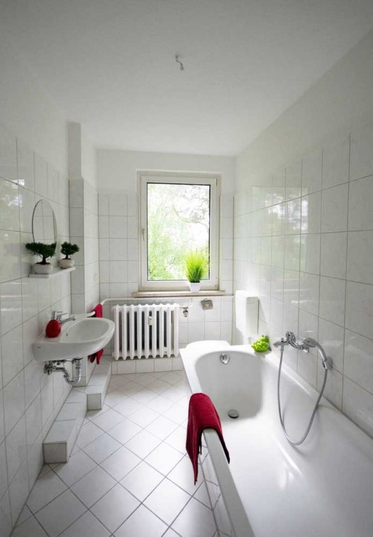 Die Böden der Wohnräume und der Diele sind mit wohnlichem Laminat belegt, Küche und Bad sind gefliest.