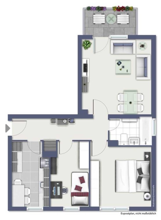 Angekommen in Ihrer Wohnung erwartet Sie zunächst ein Flurbereich, über den Sie zu allen weiteren Zimmern gelangen.