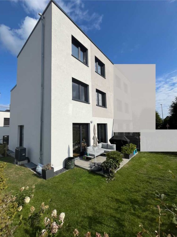 Ihr neues Zuhause in Taunusstein: Diese moderne Neubau-Doppelhaushälfte (Baujahr 2023) vereint Familienidyll und Lifestyle. Viel Platz für die ganze Familie, eine sonnige Terrasse mit Garten sowie eine Dachterrasse mit Weitblick schaffen perfekte Rückzugsorte. Hochwertige Details wie die elegante LEICHT-Küche, elektrische Rollläden und die Wärmepumpe mit Kühlfunktion sorgen dabei für exklusiven Wohnkomfort – während der Hausmeisterservice Ihnen den Alltag erleichtert.