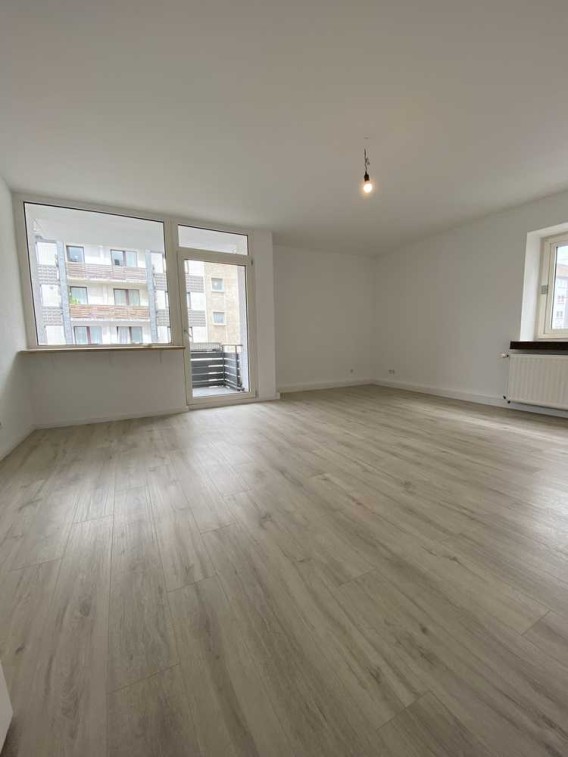 Die gut geschnittene und frisch sanierte Wohnung befindet sich im 1. Obergeschoss rechts des 4-stöckigen Mehrfamilienhauses. Die Wohnfläche von ca. 90 m² verteilt sich auf drei Wohnräume, Küche und Badezimmer. Die Böden der Wohnräume, der Küche und des Flurs sind mit Laminat ausgelegt.