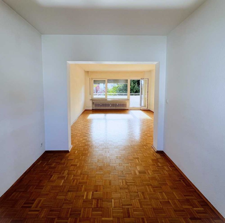 Das Herzstück der Wohnung bildet das großzügige Wohnzimmer, das viel Platz für individuelle Gestaltungsideen bietet. Ein angrenzendes Esszimmer schafft eine gemütliche Atmosphäre für gemeinsame Mahlzeiten. Direkt vom Wohn- & Esszimmer gelangen Sie in die Küche. Die verbaute Einbauküche kann gegen eine Abstandszahlung übernommen werden.