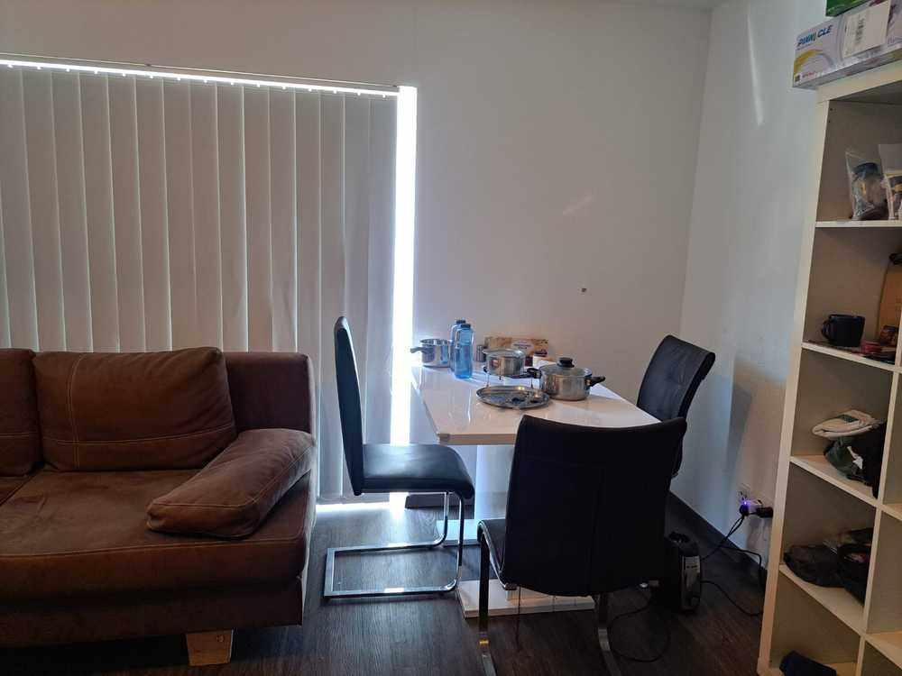 Freundlich, helles möbliertes Appartement mit Wohn-Essbereich und bodentiefer Fensterfront, sowie sep. Schlafnische, 1 sep. Küche mit integrierter Einbauküche, 1 Duschbad, 1 Diele mit Dieleneinbauschrank, TV.