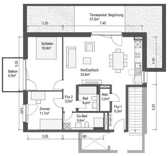 NEUBAU! Helle 3-Zimmer-Wohnung mit schöner Dachterrasse & Balkon und extensiver Begrünung