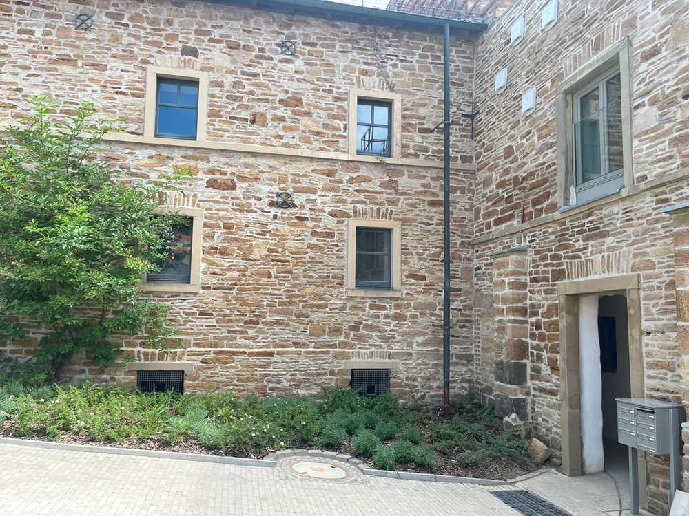 Lichtdurchflutene Wohnung im "Klostergut Deutschhof". Vollkommen ruhig, mit Blick auf das nur einen Steinwurf entfernte Höllental. Perfekt zum Spazieren oder auch zum Fahraddfahren in die nahegelegene Stadt (ca.3 km bis zum Stadtzentrum). Die Wohnung wurde aufwändig saniert, Außenfassada und Teile der Decken sowie historische Holzbalken konnten erhalten werden. Diese Wohnung verbindet einen ruhigen Rückzugsort mit einer guten Anbindung in die Stadt.