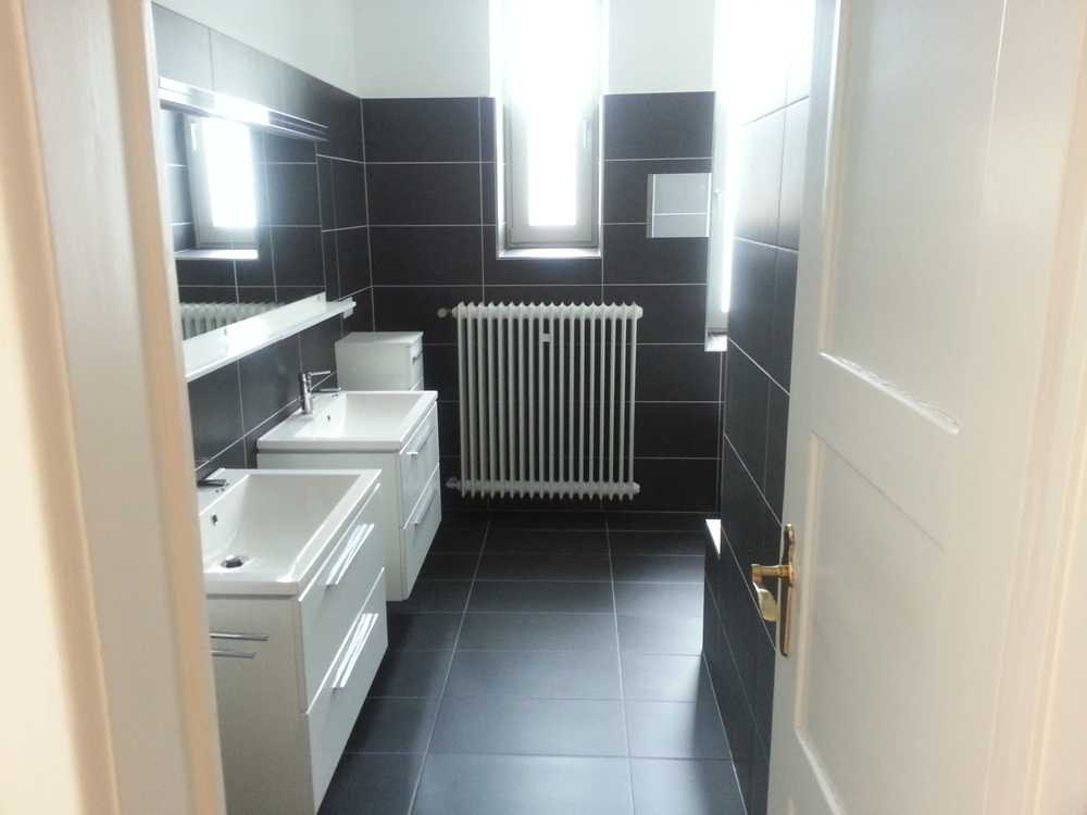 Es gibt ein großes Bad mit Duschbadewanne und 2 Waschplätzen. Weiterhin gibt es ein separates WC sowie ein Gästebad ebenso mit WC und Waschtisch.