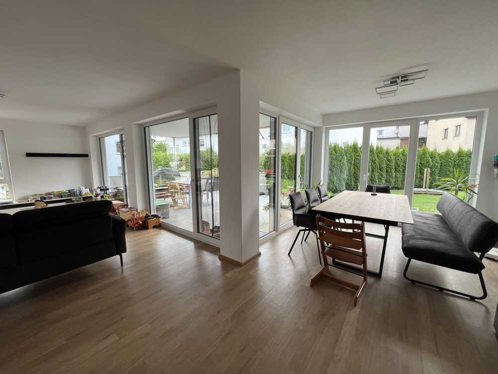 Bei der angebotenen Mietwohnung handelt es sich um eine gut geschnittene, lichtdurchflutete 4,5-Zimmer-Wohnung mit großzügiger, teilübderdachter Südterrasse mit Gartenzugang in einem Haus mit 6 Wohnungen mit modernem Ambiente. Die Wohnung liegt im Erdgeschoss und ist nach Süd-Osten ausgerichtet. Frühest möglicherEinzugstermin ist der 01.12.2025.