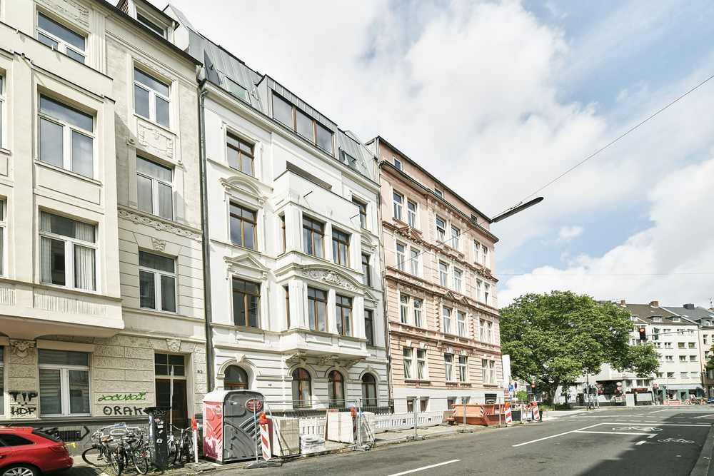 Diese stilvolle Maisonettewohnung befindet sich in der obersten Etage eines denkmalgeschützten Mehrfamilienhauses im Kölner Rathenauviertel. Das Gebäude besticht durch seine repräsentative Fassade und klassische Altbauarchitektur. Ein Aufzug führt bequem bis zur Wohnung. Ein Kellerraum ist ebenfalls vorhanden.