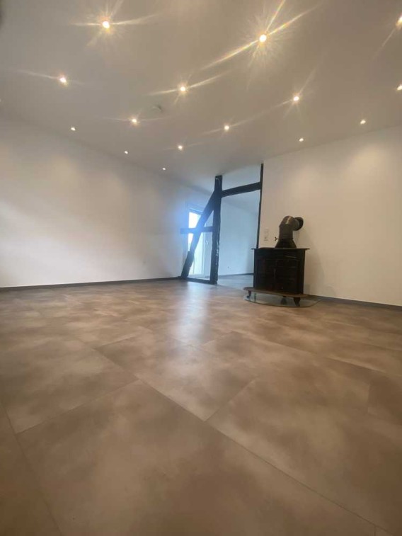 Eher eine Doppelhaushälfte, als eine normale Etagenwohnung !Neben viereinhalb einladenden Zimmern, die sich auf 2 Etagen erstrecken, zählen zu dem Apartment ein Badezimmer sowie ein separates Gäste-WC. Auf dem Balkon lässt es sich wunderbar vom Alltagsstress erholen. In fast allen Zimmern sind LED- Deckenspots eingebaut. Es gibt einen Kaminofen der bei Bedarf wohlige Wärme spendet, und dazu noch Heizkosten senkt-