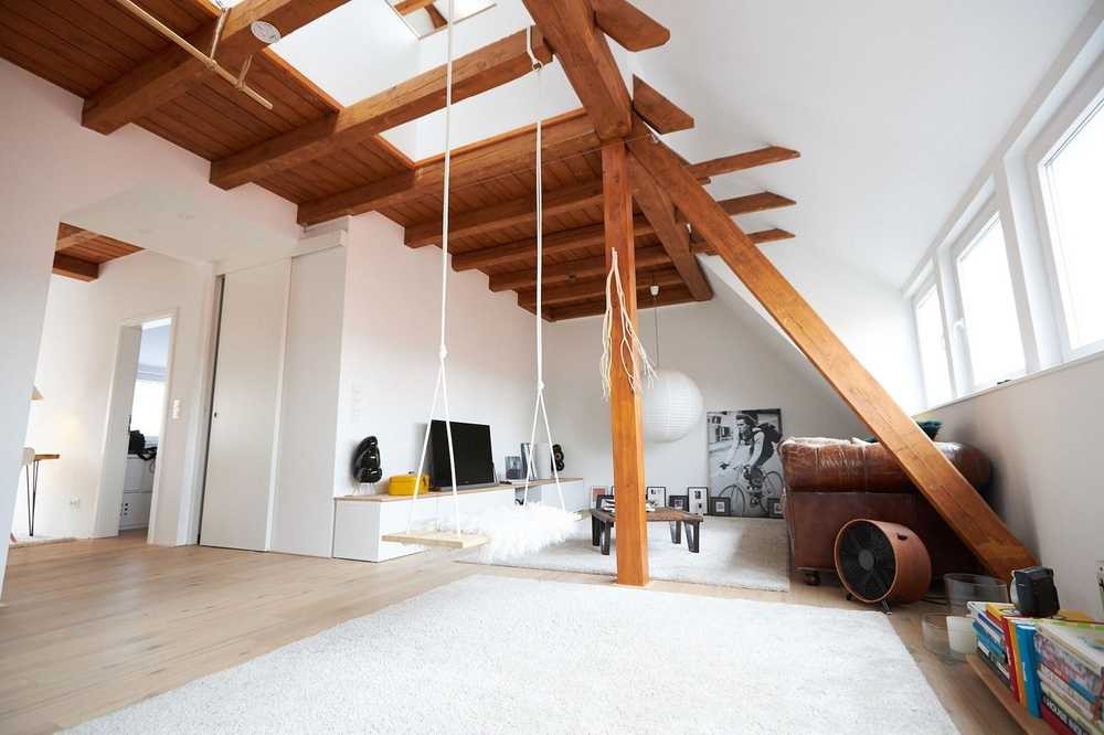 In der ersten Ebene der Maisonette Wohnung befindet sich die Küche, der große Wohnraum ein weiteres Zimmer und ein modernes Duschbad.
