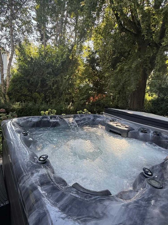 Wellness inklusive: Infrarotkabine, großzügige Terrasse mit Whirlpool und direktem Zugang in den Garten – ein Ort zum Entspannen, Durchatmen und Genießen. (Nicht im Mietpreis enthalten, auf Wunsch zu übernehmen)