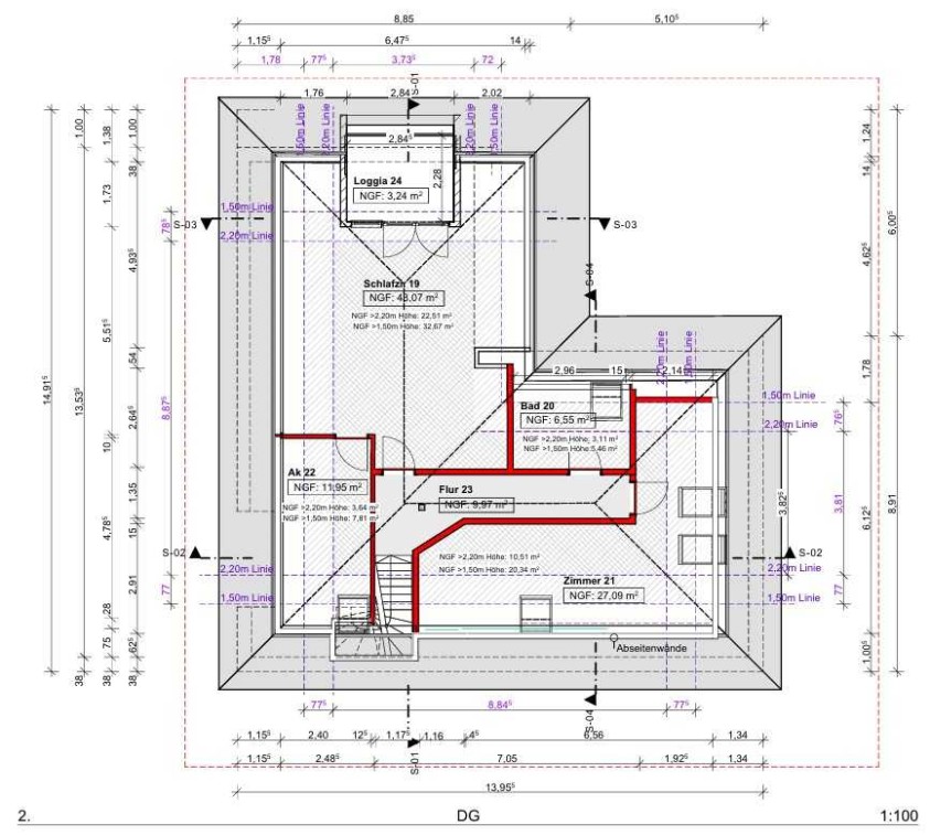 Das Obergeschoss wurde im Jahr 2025 neu ausgebaut und verfügt über drei Zimmer sowie ein frisch renoviertes Badezimmer. Die Räumlichkeiten können je nach Wunsch als Schlafzimmer, Kinderzimmer oder als Home-Office genutzt werden. Geht man die Treppe hinauf ins Obergeschoss betritt man als erstes ein 48 qm-großer Raum der sich als Elternschlafzimmer anbietet. Von dem Schlafzimmer geht eine Loggia mit Südausrichtung ab mit einem schönen Blick ins Grüne. Von dem Schlafzimmer geht ein weiterer Raum ab, der als Ankleidezimmer oder als Kinderzimmer genutzt werden kann.