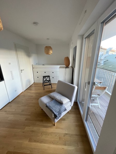 Bei dem Studio-Apartment handelt es sich um einen Erstbezug des Bauprojekts "The Urban" nach Neubau im aufstrebenden Gallus-Viertel in Frankfurt.