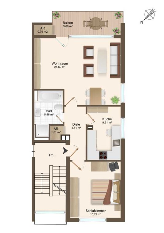 - plus ein großer Balkon mit Platz für gemütliche Stunden draußen