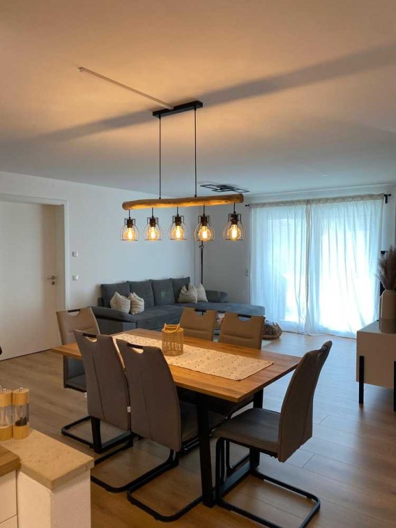 - helles Wohn- und Esszimmer mit Küchenbereich und Zugang