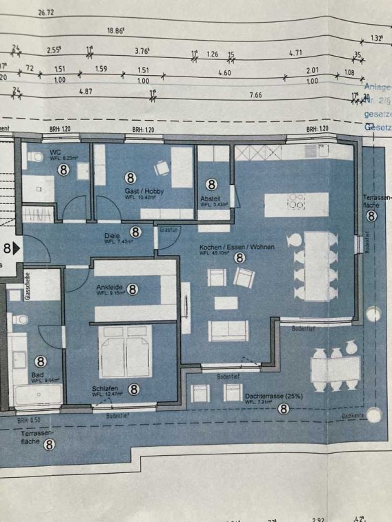 Neben drei attraktiven Zimmern zählen zu dem Objekt ein Badezimmer mit Wanne und Dusche, sowie ein separates Gäste-WC mit Dusche. Das Objekt ist barrierefrei und lässt sich bequem über einen Fahrstuhl erreichen. Die Dachterrasse lädt zum Entspannen und Sonne tanken ein. Zur Wohnung gehört ein Tiefgaragenplatz und Aussenstellplatz für Ihr Auto, was Ihnen bequemes Parken ohne langes Suchen garantiert. Ebenso steht Ihnen ein Kellerraum zur Verfügung. Es handelt sich um ein KfW Effizienzhaus 55.