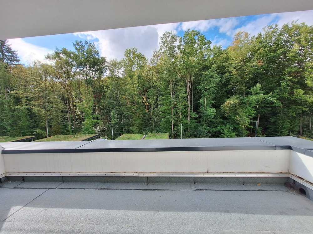 Das Dachgeschoss beeindruckt mit einem exklusiven Badezimmer, ausgestattet mit einer freistehenden Badewanne und einer stilvollen Raumaufteilung auf ca. 16 m². Ein Ankleidebereich mit Platz für viele Schränke sowie ein großes Schlafzimmer bieten höchsten Komfort. Von hier gelangen Sie auf eine großzügige Dachterrasse mit über 18 m² Fläche und einem traumhaften Blick auf den angrenzenden Wald. Dank der massiven Betonüberdachung kann dieser Bereich auch bei wechselhaftem Wetter genutzt werden, ein ruhiger Rückzucksort an dem Sie die Natur genießen können.