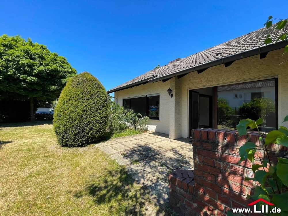 Im Erdgeschoss gelangen Sie über den großen Eingangsbereich in den hellen und offenen Wohn-/Essbereich. Von hier hat man einen herrlichen Blick in den schön angelegten Garten. Die Terrasse ist teilweise überdacht und mit einem gemauerten Grill ausgestattet. Weiterhin sind im EG eine komplett ausgestattete Küche mit neuem Backofen, zwei Schlafzimmer und ein Tageslichtbad mit Wannenbad angeordnet.