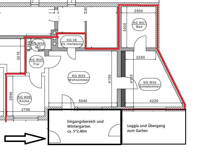 Der Eingang der Wohnung führt Sie direkt in einen gemütlichen Wintergarten, der als Übergang zur Terrasse und dem Garten dient. Hier können Sie entspannen und den Blick ins Grüne genießen – der Garten steht Ihnen zur Mitbenutzung zur Verfügung.