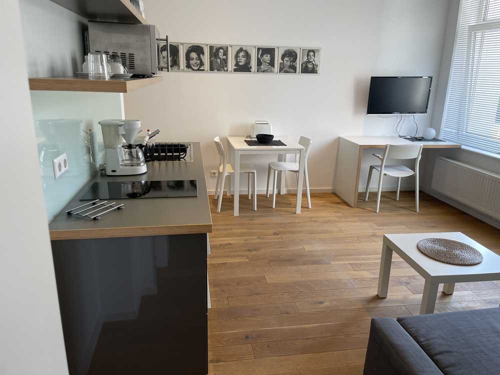 Die modern eingerichtete Wohnung mit sehr schöner Aufteilung ist komplett neu eingerichtet und ausgestattet. Neben dem Badezimmer mit Dusche befindet sich eine Küchenzeile mit angrenzendem Ess- und Wohnbereich. Das Bett hat eine Größe von 1,40 m x 2,00 m.