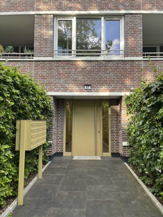 typischen Rotklinkerfassade versehen und passt sich damit in die unmittelbare Umgebung ein, die