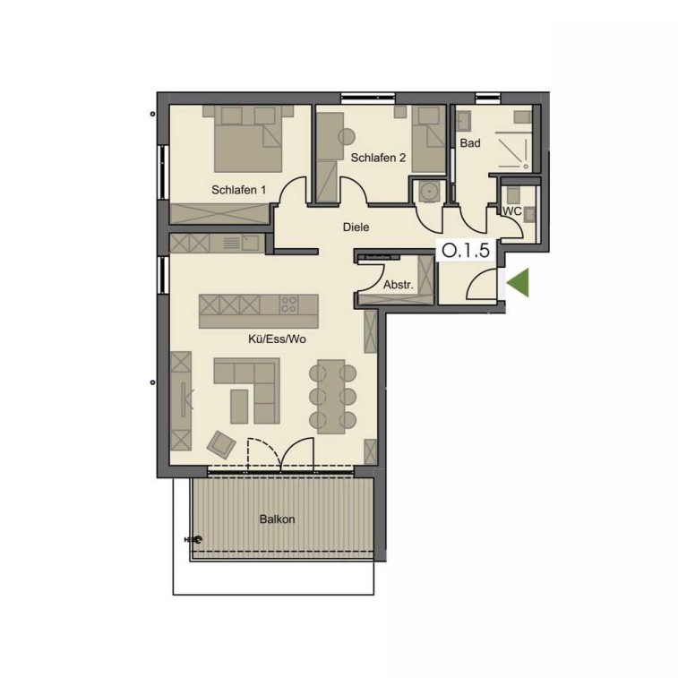 Die nach Südwesten ausgerichtete Anlage überzeugt durch einen unverbaubaren Blick ins Grüne und eine durchdachte Architektur: Erdgeschosswohnungen verfügen über großzügige Terrassen mit Gartenanteil, im Obergeschoss laden überdachte Balkone zum Entspannen ein, und im Dachgeschoss stehen weitläufige Dachterrassen zur Verfügung.