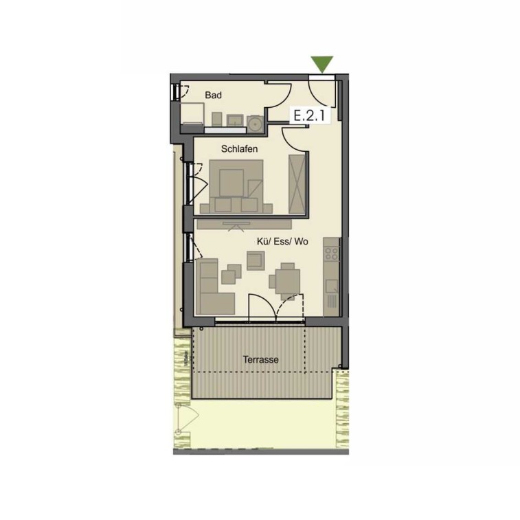 Die nach Südwesten ausgerichtete Anlage überzeugt durch einen unverbaubaren Blick ins Grüne und eine durchdachte Architektur: Erdgeschosswohnungen verfügen über großzügige Terrassen mit Gartenanteil, im Obergeschoss laden überdachte Balkone zum Entspannen ein, und im Dachgeschoss stehen weitläufige Dachterrassen zur Verfügung.